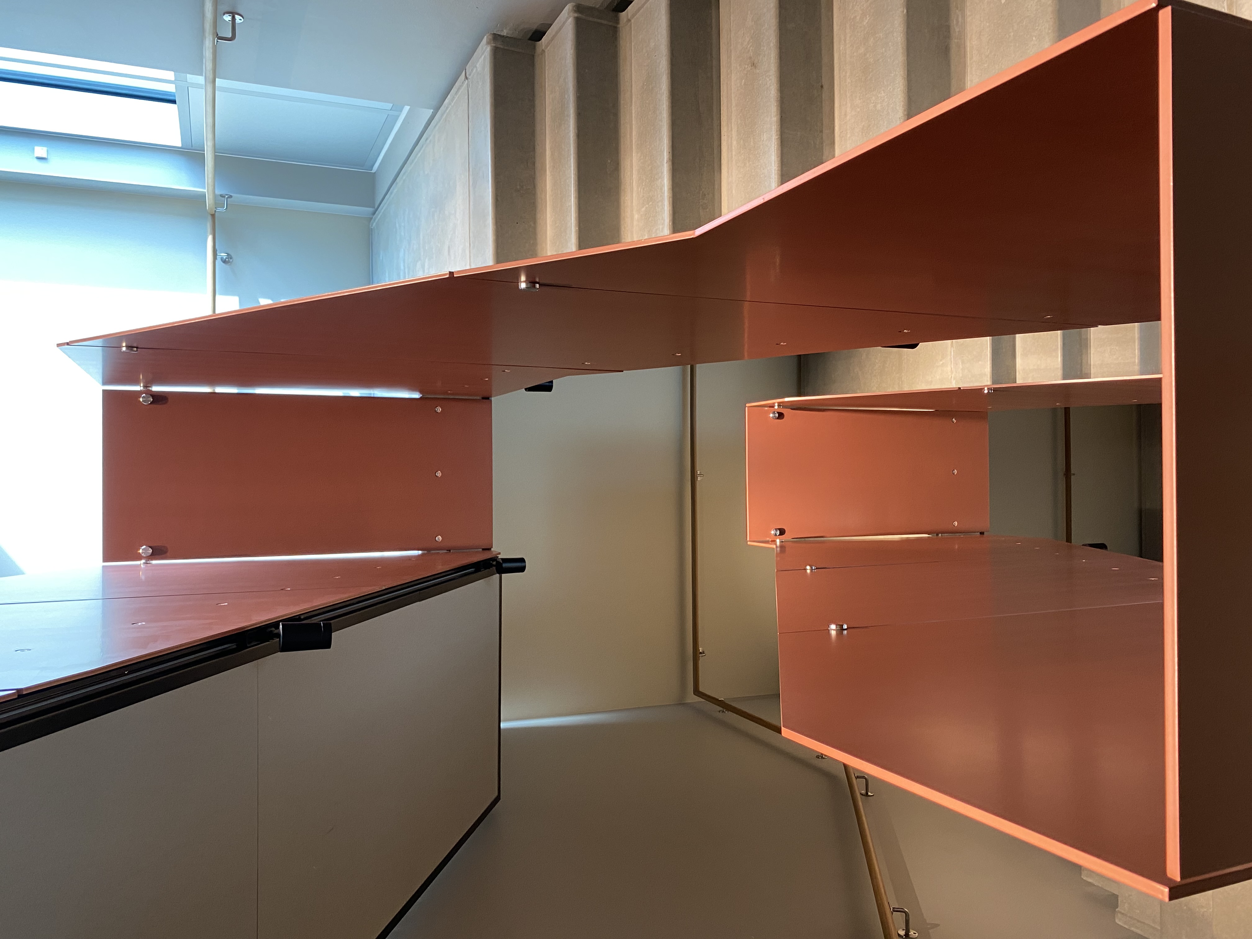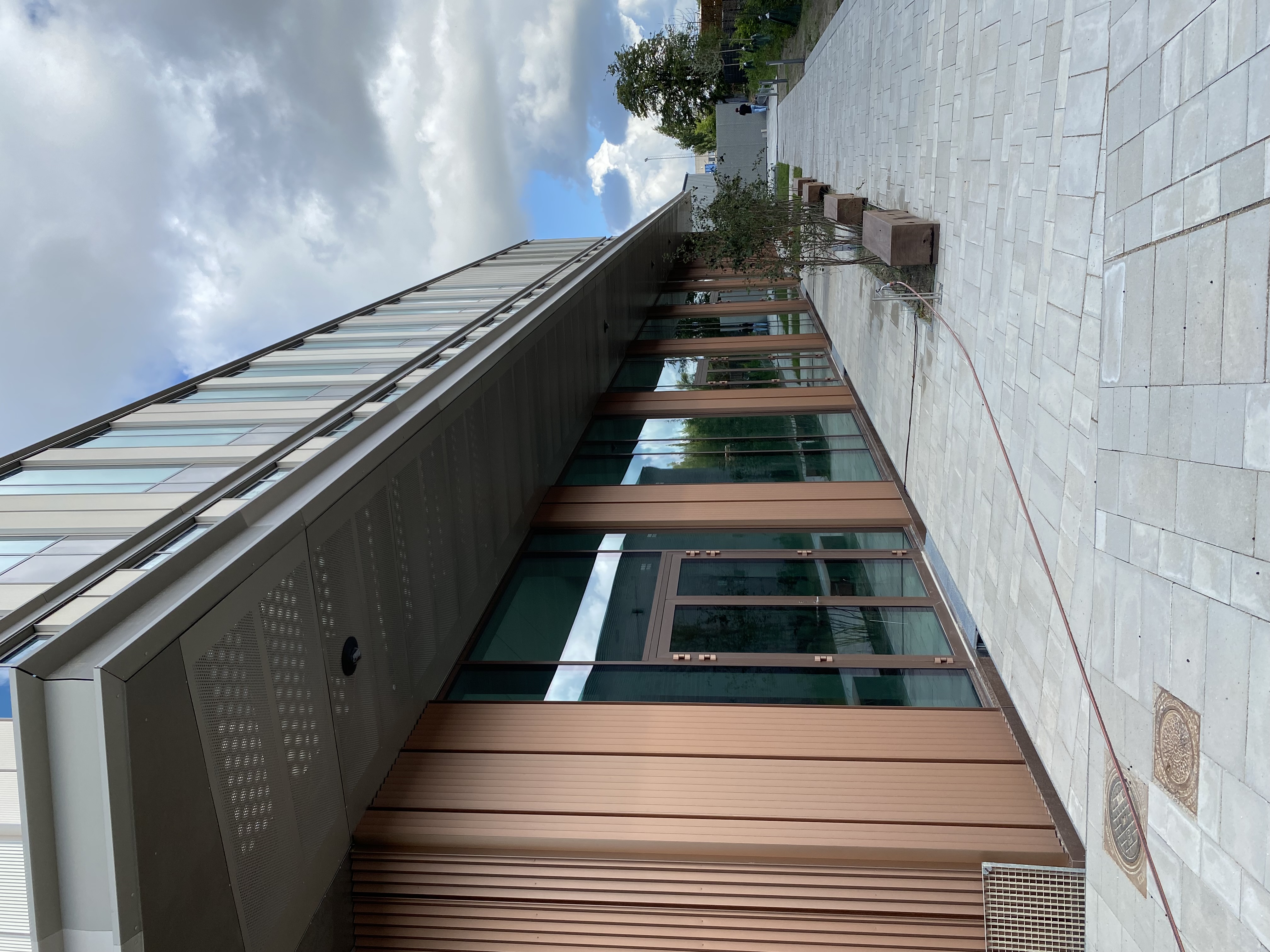 Entreprise bestod blandt andet af stålplader som værn i trappeopgange inkl. træhåndlister.
