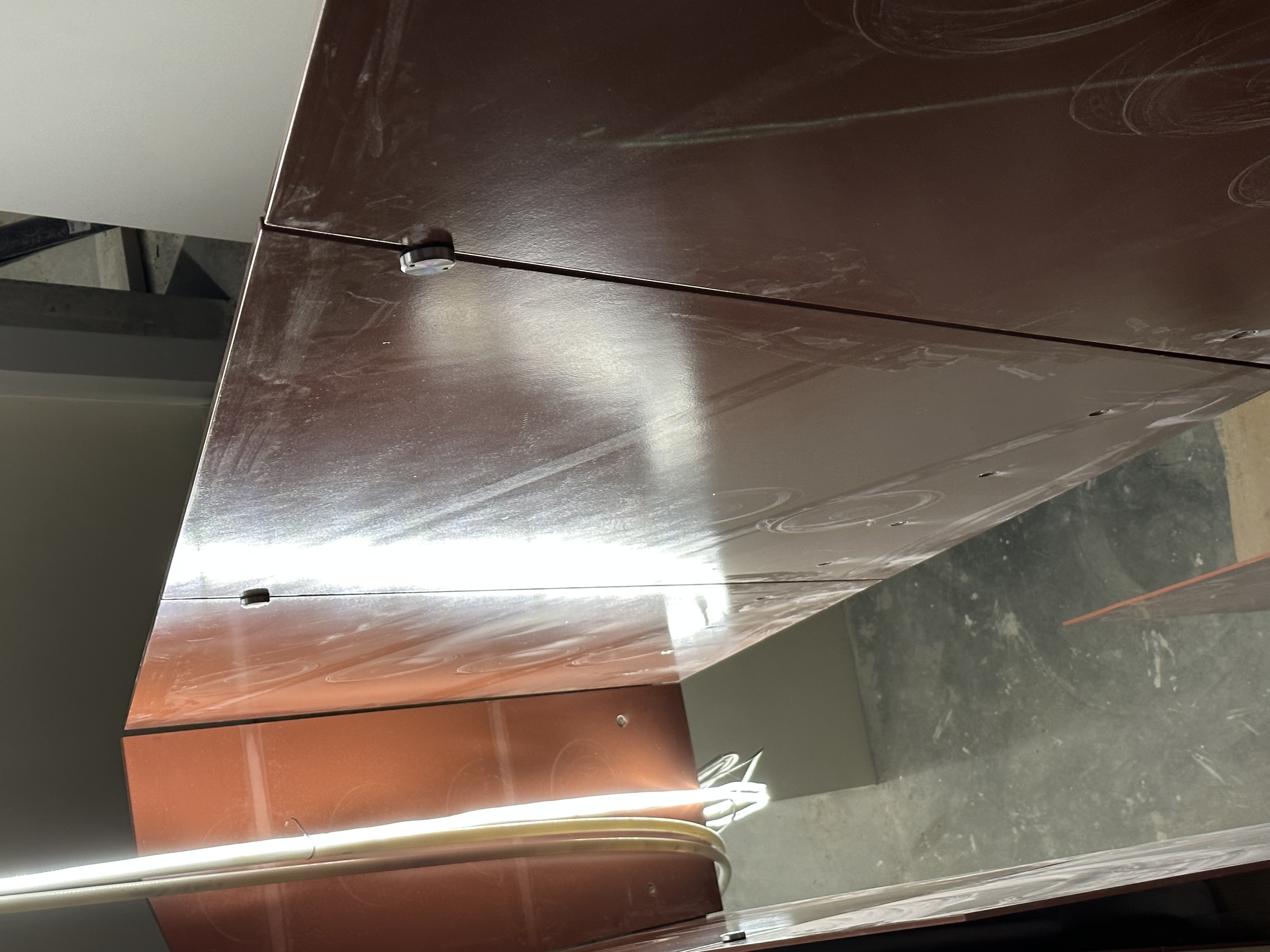 Pladerne er monteret med betonskruer i bunden, og samlet med en grisetryne mellem pladerne, og er nu dækket af indtil aflevering.