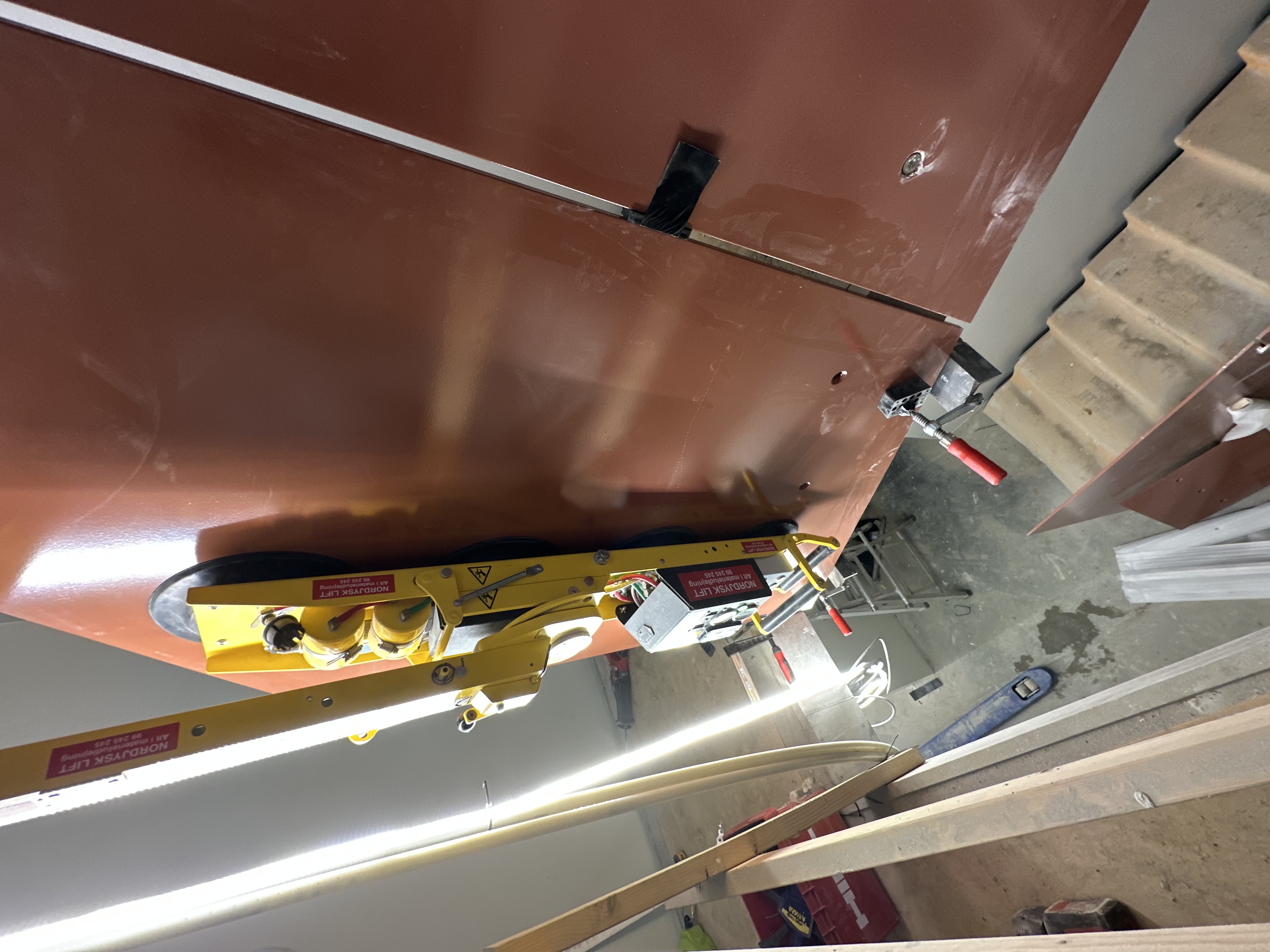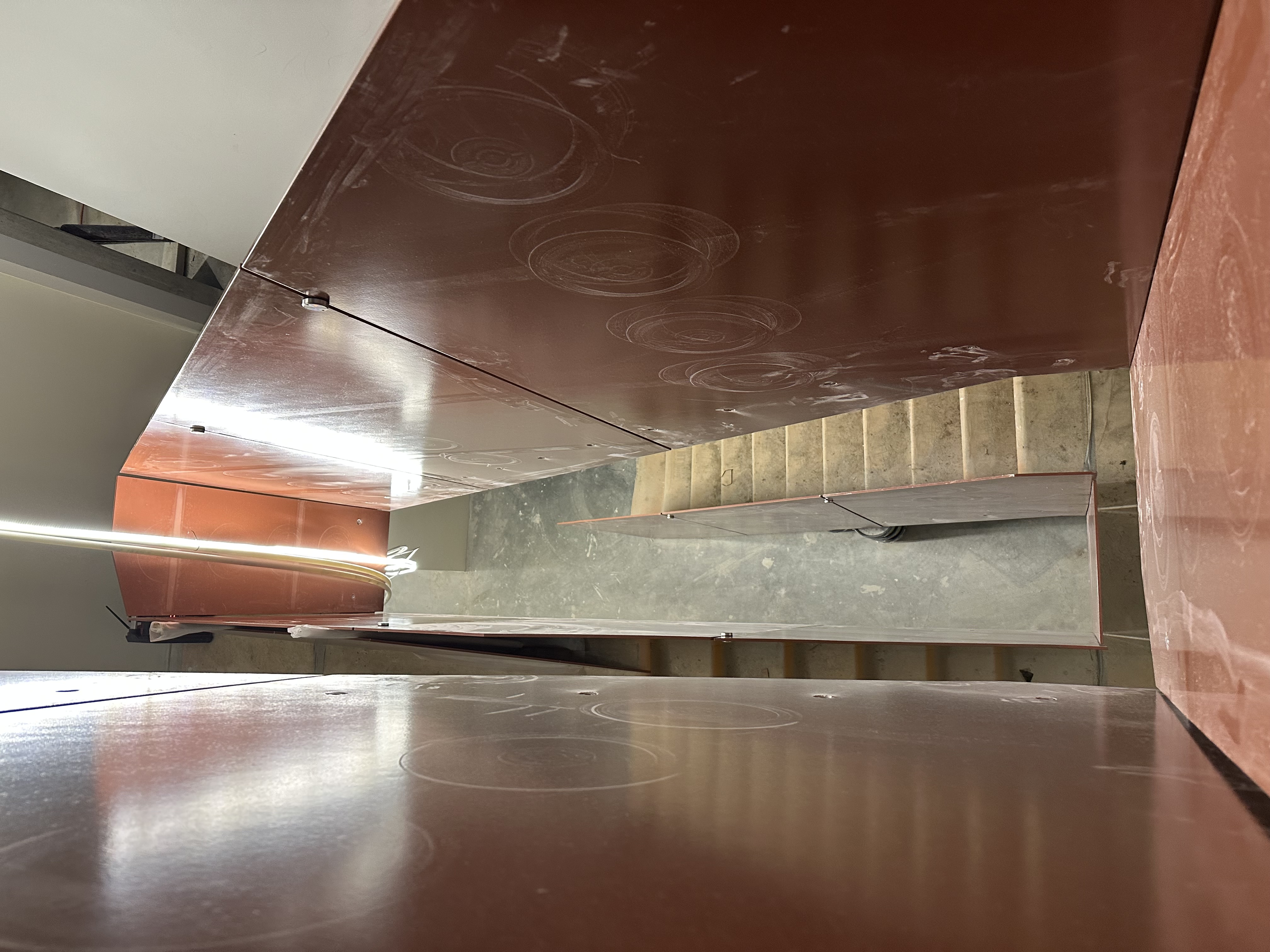 Wicotec Kirkebjerg, montering af stålplader i trappeopgange