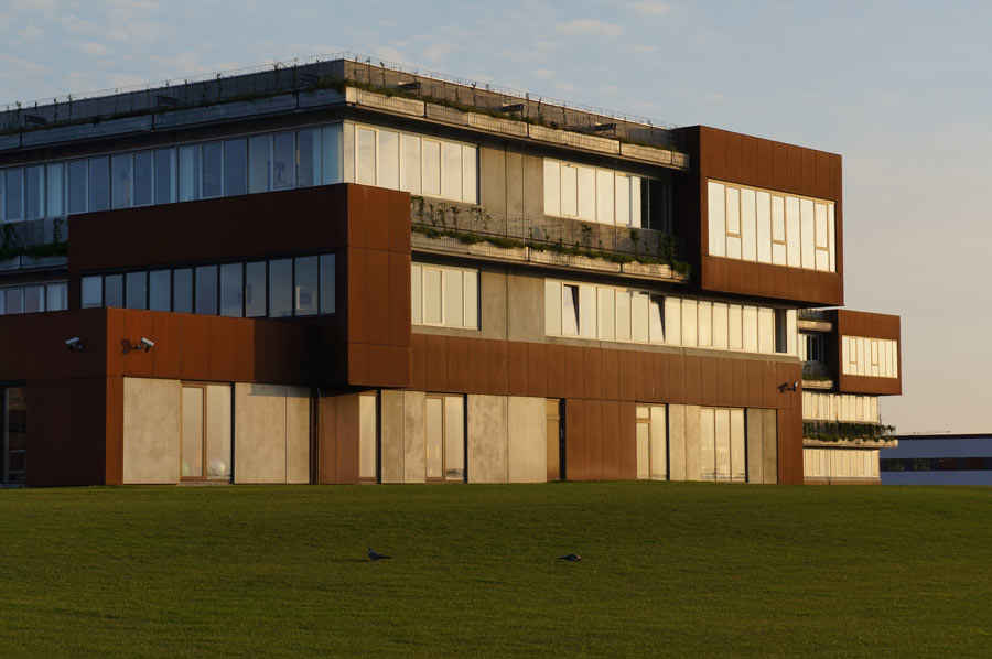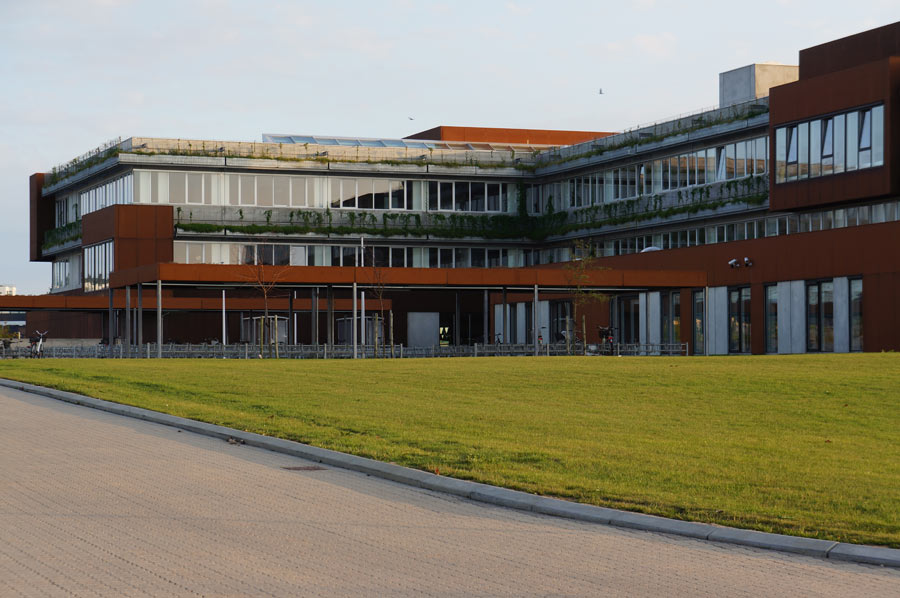 På Sygeplejeskolen i Skejby er facaden udført i cortenstål.